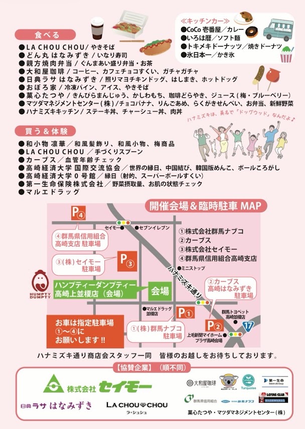 ※会場のハンプティーダンプティー高崎上並榎店には駐車できません。臨時駐車場はチラシ裏面をご覧ください。
